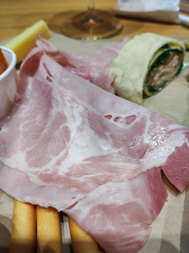 Read morePiù volte prendo aperitivo con tagliere classico, niente da dire anzi, ma questa sera la qualità non è come sempre! Prosciutto di certo non invitante troppo grasso e variegato, la salsina piccante giusto il fondo del contenitore che è già piccolo e se lo si riempie poco si raschia subito il fondo....il vassoio poi non perfettamente pulito, diverse zone umide o unte non saprei, spero che la prossima volta ritroverò la qualità di prima! Non faccio nomi ma il commesso, capelli e barba scura per di più sempre molto serioso...dai un...