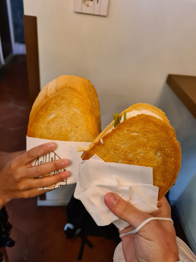 Simon: avevo paura di non saziarmi con un panino, invece era molto sostanzioso e mi è piaciuto molto. Anche se al primo sguardo può sembrare simile ad un semplice toast, quel panino è tutt'altro, è buonissimo! Consiglio il panino Elbrus, davvero molto buono. Peccato solo per i pochi posti a sedere all'interno...