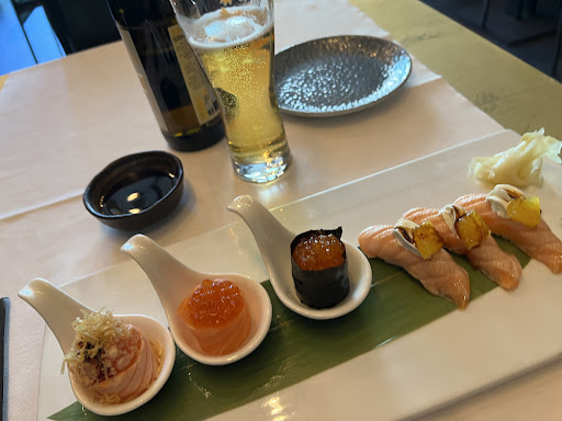 Locale datato avrebbe bisogno di una rinfrescata, è così da sempre . Riguardo al menu stessa roba , praticamente non sai quello che prendi , c’è una foto una tantum , qualità del cibo niente di che , identica alla concorrenza che costa un quarto però , in due abbiamo preso una bottiglia d’acqua, 2 Gyoza di carne , 1 spaghetto di soya 1 insalata 1 sashimi e 1 rotolino di riso fritto che non ricordo il nome , totale 57 euro !!!! Rigorosamente senza scontrino , veramente troppi per la scarsa qualità del cibo e per il servizio .AGGIUNGO RISPOSTA A VOSTRO COMMENTO: Ho ordinato quello che ho scritto sopra nient’altro , ho chiesto il piatto di gyoza una seconda volta , semplicemente perché non era arrivato , abbiamo giusto aggiunto un insalata ma perché eravamo praticamente a stomaco vuoto , tra l’altro voglio ricordare che eravamo solo in due eppure ci siam divisi i piatti perché mai nulla è arrivato insieme , prezzo eccessivo ripeto , il salmone poi non era certo di prima scelta per essere alla carta , pallido e molto grassoso , quelli “buoni” sono selvatici e praticamente privi di grasso , allora si che si paga volentieri , ma 57 euro in nero per quelle misere e semplici pietanze son veramente troppe , senza vino senza caffè ☕️ ci tengo a precisare . Per gli amanti del giapponese consiglio Milano , li si spendono volentieri...