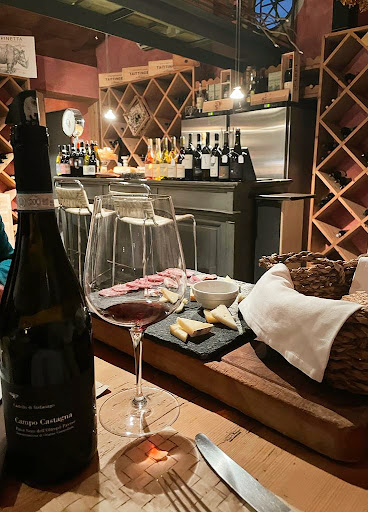 Voglia di un aperitivo fuori città, voglia di un buon calice di vino rosso, voglia di un bel posto fuori dai luoghi comuni e dal coro.. Ecco La Corte. Andrea, il titolare è preparato, entusiasta, cordiale, ci ha proposto vini conosciuti ma non convenzionali, taglieri di formaggi e salumi eccellenti, servizio attento. Prezzo assolutamente onesto. Cornice romantica, tranquilla, bucolica. Ci ritorneremo con amici anche per qualk piatto espresso ed easy della cucina di Annetta.. da provare l'interno, piccolo ma super accogliente e curato nei dettagli....