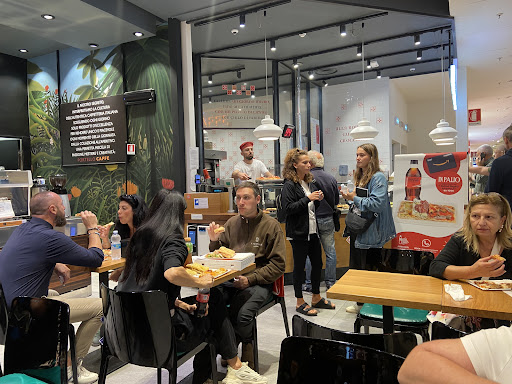 Situazione tavoli purtroppo piuttosto negativa perché a metà con un altro punto di ristoro/caffè; inoltre alcuni clienti risultano piuttosto maleducati poiché prendono il posto ben anche prima di prendere il biglietto per l'ordinazione e ci si ritrova con delle persone che hanno la pizza da mangiare senza avere un posto a sedere dove...