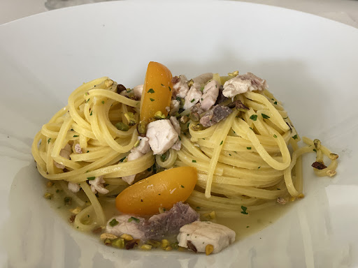 Read moreCi siamo fermati in questo locale perché attirati da molte recensioni positive. Una volta arrivati ho capito il motivo :al primo posto sicuramente la disponibilità, la cortesia e l'educazione della proprietaria, poi abbiamo preso 3 primi differenti, ossia spaghetti allo scoglio, linguine zucchine e gamberetti e una superba carbonara, poi un ottimo piatto di straccetti di manzo con rucola, e poi dolci strepitosi. Prezzo ottimo per questo meraviglioso pranzo....