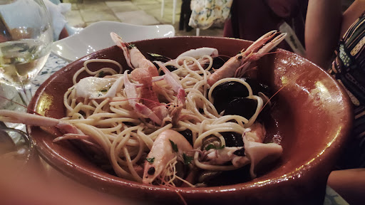 Ordiniamo i primi in 3minuti arrivano i paccheri ovviamente precotti dal gusto di plastica. Il pesce molto buono. Il sugo pure ad essere onesti. I fritti misti arrivano dopo 80min, il giusto tempo per pescarli, premere le olive per fare l'olio e friggere... avevano dato il nostro ordine ad un altro tavolo senza avvisarci. Cibo 1 su 5.
