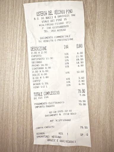 Read moreEin wirklich tolles Lokal. Man sitzt sehr gut, urgemütlich. Wir waren mit dem Wohnmobil unterwegs und haben dieses Jahr dreimal dort gegessenen. Es waren die mit Abstand besten Abende unserer gesamten Tour! Letztes Jahr waren wir auch schon viermal dort. Das Essen war immer ganz ausgezeichnet! Egal ob Antipasti, Pasta oder Secondi. Besonders die Pasta mit Muscheln sind sensationell! Auch die Desserts sind topp, der Espresso zum Schluss hat die richtige Crema, schmeckt vorzüglich! Das beste an dem Restaurant ist die uneingeschränkte, nicht aufgesetzte Freundlichkeit im Restaurant! Dies bei allen Mitarbeitern! Der sehr junge Kellner behielt selbst im Streß seine freundlichen Art. Alles lief immer perfekt! Die Besitzerin hat ihr Herz am richtigen Fleck. Selbst auf ungewöhnlichste Probleme reagierte sie Mega freundlich. Ich habe nach 30 L Wasser für unseren Camper gefragt. Selbst bei dieser ungewöhnlichen Frage blieb sie nett und freundlich, problemlos durfte ich zwei Kanister Wasser holen, natürlich erst als alle Gäste bereits gegangen waren. Selbst unser Hundi wurde immer mit frischem Wasser verwöhnt. Das Lokal wird meiner Meinung nach hauptsächlich von Einheimischen sehr gut besucht, was für das Lokal spricht. Oft genug haben wir auf unserer Toskana Tour Abzocke Lokale erleben müssen, mit miserabler Qualität, unfreundlich serviert, und einer Mega Rechnung zum Schluss. Preis Leistung sind hier absolut topp!!! Wir kommen wieder!...
