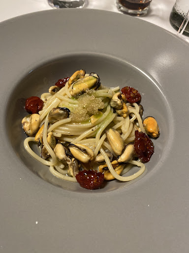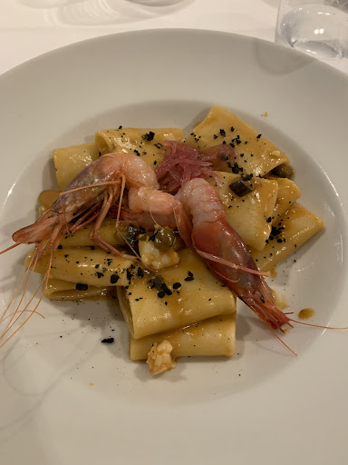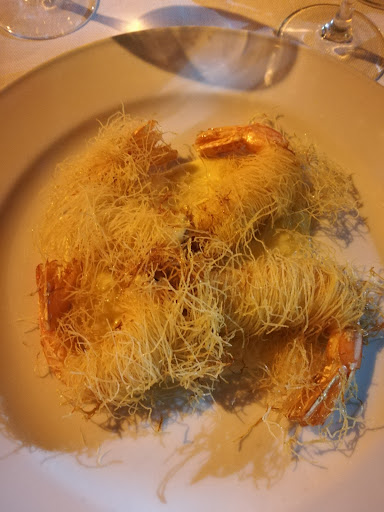 Read moreAbbiamo fatto foto solo degli antipasti perché siamo state letteralmente rapite dai sapori. Gusti intensi e appassionati, eleganti e raffinati. I gamberoni in pasta kataifi una scoperta inaspettata. L'impatto visivo è interessante, ma il gusto è oltre ogni aspettativa. I gamberoni si sciolgono in bocca, accompagnati dalla delicata morbidezza della vellutata e dal croccante crepitio della pasta karaifi fritta. Piatto delicato e gustosissimo! Il polpo (spero di aver riportato correttamente i nomi dei piatti) invece aveva un sapore deciso e passionale, pepato, intenso, veramente coinvolgente: perfettamente bilanciato dal pane tostato caldo in accompagnamento. Come primo, di cui purtroppo non abbiamo immagine per la curiosità di assaggiare subito, gli sgonfiotti: pasta ripiena avvolta da una salsa vellutata e gustosa, con note intense e colorate. Un piatto di mare veramente squisito. La frittura poi è stata magistrale: anche qui gamberi dalla polpa che si scioglieva in bocca pur mantenendo l'inconfondibile "croccantezza" del crostaceo cotto alla perfezione, ne troppo ne troppo poco. Pastella leggerissima. Il dolce, un tiramisù al pistacchio e nocciole, saporito al punto giusto: buonissimo!!!! È stata una cena da favola! Il personale gentilissimo, il locale veramente accogliente e raccolto....