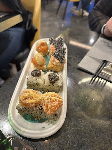 Read moreIl cibo devo dire veramente buono. Un giapponese sfizioso e ben abbinato.per questo le 2 stelle. Personale peró disattento. Non mi riferisco alla tipologia di servizio, ovviamente commisurato alla realta basso costo che abbiamo scelto per questa cena.... Purtroppo peró non ci sono arrivate 5 delle portate ordinate inizialmente e nessuno se n'é accorto fin quando non mi sono alzata per dirlo ad una ragazza che ha delegato un collega il quale non si é minimamente posto il problema di farsi vedere costernato per l'accaduto. Però ha risolto dai... meno male va...! Poi un cameriere (vicino a noi) che nell'apparecchiare con i piatti puliti prima li sgrulla in verticale dalle gocce poiché, a quanto pare, usciti dalla lavastoviglie nessuno li asciuga e vengono quindi messi direttamente a tavola bagnati. Infine dotati di paraocchi, nel senso che se ti sbracci ti vedono altrimenti amen. Il problema però non é chi lavora...loro alla fine si fanno in quattro... bensi l'assenza di un caposala che monitora la situazione. Ennesima conferma che quando vince la quantità é la qualità a pagarne il prezzo. Insegnate ai camerieri, non riduceteli a meri esecutori perché é possibile mangiare in modo mediocre ed essere serviti bene...oppure mangiare bene ed essere serviti male. In quale di questi casi non ritornereste...