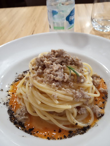 Read moreLocale carino. Nella ristrutturazione avrei messo dei pannelli per assorbire i suoni perché risulta estremamente rumoroso solo con il chiacchierare della gente. Il cibo è di qualità buona, ottima gricia con i carciofi. Aumenterei però un po' le porzioni perché sono un po' troppo scarse. Nell'antipasto misto che hanno servito c'erano 3 pezzetti di verdura in pastella, 3 fettine stile ostia di salame, una parvenza di mortadella, penso abbiano usato in tutto 2 fette di mortadella per un tavolo di 30 persone circa, mezza fettina di pane con un po' di lardo e un cucchiaio di formaggio spalmabile all'erba cipollina. Come piatto principale avevamo la scelta tra un patto di tagliatelle al pomodoro con pecorino e mente, la gricia con i carciofi ed un doppio hamburger ai carciofi; per la pasta potevano calarne un po' di più ed il doppio hamburger era formato da 2 hamburger da circa 50g che insieme ne facevano uno decente. Essendo lì per due compleanni ci è poi stata servita una torta alle carote con panna, anche questa molto buona ma alquanto piccola. Era delle dimensioni della torta che faccio io a casa quando ho alcuni amici a pranzo. Tanto piccola che non ce n'e' stata a sufficienza nemmeno per un bis richiesto da alcuni di noi. Sulla qualità e la bontà ripeto che è stato tutto buono ma il mio compagno rientrando a Roma si è fermato a prendere della porchetta lungo la strada ed ho detto tutto. Capisco il contenimento dei costi, ma.......Sul prezzo non posso dire nulla perché era un menù concordato dai festeggiati e quindi non ho avuto modo di...
