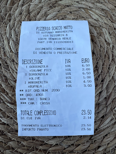 Buongiorno miei cari lettori, Oggi non posso fare altro che dare le mie 5 stelle(perché più non si può altrimenti le darei) a tutti e tre i servizi,cioè CIBO SERVIZIO E AMBIENTE CIBO: qualità davvero ottima di ingredienti,leggeri gustosi da lasciare il palato a ogni morso con il detto..."ORA NON VEDO L'ORA DI DARNE UN ALTRO" oppure "CASPITA,L'HO GIÀ FINITO!" SERVIZIO: davvero eccellente,personale sempre sorridente,cordiale e disponibile! Oltre al fatto che a livello pratico sono sempre efficienti e veloci,senza contare che entrare allo SCACCO MATTO anche per la prima volta,vi sembrerà come entrare direttamente a casa di una famiglia o un/una migliore amico/a AMBIENTE: Ma che c'è lo dico a fare?!?!... ebbene sì ve lo dico! Ambiente ordinato e pulito a tema del nome dello stesso locale oltre al tema che rappresenta VENARIA REALE nonché la REGGIA!!! Con ciò vi ho detto tutto,poi spero che vi ho invogliato ad andare ad assaggiare i loro piatti e pizze ricordandovi che non troverete il primo muratore che con il TFR ha aperto un locale per provare una nuova avventura,ma che troverete addetti ai servizi di ristorazione con grande esperienza e ricchi di premi ben visibili vinti a livello europeo e mondiale!