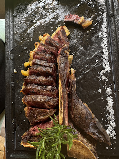 Read moreAvevamo sentito parlare di questo ristorante molte volte, siamo amanti della carne quindi volevamo provare questo locale da 2 anni. Si è presentata l'occasione per una cena questo mese di agosto. Effettivamente il panorama è bellissimo, ma si gode soprattutto dal parcheggio o dai pochi tavoli all'interno (la sala non è molto grande). Eravamo fuori quindi nessun godimento del panorama...ma a prescindere e comunque, il panorama è un dono di Madre Natura e non del ristoratore. L'ambiente, la disposizione del ristorante, la cura dell'arredo, la scelta dei piatti : il tutto è di buon gusto. L'accoglienza è cordiale ma non dei più calorosi. Eravamo 4 adulti ed un bambino di 7 anni. Non sapevo della marcata riluttanza dei capi nei confronti dei bambini... Iniziamo cambiando il bicchiere dell'acqua (molto design) di nostro figlio nel caso lo rompesse. Prendiamo atto del menù e per la prima volta nella nostra vita (abbiamo avuto modo di regalarci dei bei ristoranti, tra cui stelle Michelin), scopriamo un preambolo sull'atteggiamento dei bambini e regole di buona educazione per il rispetto della clientela. Ci portano una piccola "entrée" (una pallina di baccalà su crema di acciughe) per gli adulti ma niente per nostro figlio, nemmeno una proposta per qualcosa di meno marcato nel gusto. Ordiniamo 2 bottiglie di vino (1 bianco/1 rosso), 4 antipasti, 1 piatto di Ravioles (per nostro figlio) poi una costata da 1,7 kg di Angus dalla Nuova Zelanda, 2 dolci, 4 caffè e 4 digestivi. Sicuramente i prezzi sono chiaramente indicati ei prodotti di ottima qualità. Inoltre, di solito non ho difficoltà a pagare anche belle ciffre ; mi aspetto però da questo tipo di struttura un servizio irreprensibile e degno dello standing che vuole trasmettere. È chiaro che questo è tutt'altro che il caso qui. 2 domande poste al nostro cameriere che non ha saputo risponderci ma è dovuto tornare in cucina per fornirci una risposta. In un ristorante gourmet degno di questo nome, anche su una terrazza, i tavoli raramente sono di plastica, ti viene dato un cambio di bicchieri da vino quando assaggi 2 bottiglie diverse. Tutti questi sono dettagli che contano quando si afferma di essere una struttura che si "prende cura" dei propri clienti. Nonostante la qualità dei prodotti, la mancanza di professionalità e senso commerciale, offuscata dalla pretenziosità della struttura e dalla mancanza di apertura verso i bambini non hanno reso molto piacevole questo momento. Vorrei quindi concedermi un consiglio ai proprietari : dalla buona educazione che richiedete ai vostri clienti, applicate a voi stessi il know-how della vostra...