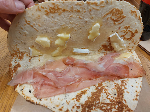 Read moreIl locale ha un arredamento "minimale", si ordina al totem elettronico dove viene rilasciato un affarino circolare che dovrebbe illuminarsi e vibrare quando ciò che avete ordinato è pronto e si a ritirare al banco quindi niente servizio al tavolo. Il condizionale è perché il nostro non ha funzionato, e ad un certo punto vediamo arrivate una ragazza con le nostre piadine in mano che abbiamo dovuto riconoscere guardandoci dentro. Poi piadine..... Mezze piadine visto le dimensioni, fatte al momento no no e ancora no il tutto su un tavolo unto (non ne ho visto pulire uno) nemmeno una tovaglietta di carta nulla ho dovuto usare il tovagliolo come tovaglietta visto le mosche che bazicavano sui tavoli birra appoggiata al tavolo senza chiedere nemmeno se volevamo un bicchiere servizio pessimo gli stessi tavoli molto piccoli più adatti a bambini che persone adulte. Alla fine ho deciso di andarmene non consumando altro serata pessima sconsigliato i prezzi fortunatamente normali ma sulla qualità del cibo e del servizio non ci...