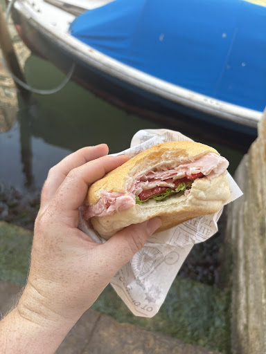 We came here a few times back in March 2024 and returned today for really delicious and fresh juice, coffee, super fresh sandwiches and a really lovely employee. This place is immaculate, well priced for what it is, and in a quiet and clean neighborhood with easy vaporetto access. I think the negative reviews come from people not understanding the type of sandwiches they'll get; there aren't sauces, spreads, or condiments that come on these sandwiches, just fresh ingredients and freshly sliced deli meats, which can be super delicious. No bathrooms. When you tell the sandwich maker that you'd like take away, they, without fail, warn you of the seagulls, which is kind and not something many people would do. If your children like sandwiches without a tomato or whatever, it's easy to remove for them and still share a...