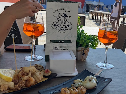 Read moreAfter the good ratings we decided to visit Al Banky during our trip to Burano. We took there one aperol each and split at one grilled shrimp, grilled cuttlefish and a small plate of fried seafood.