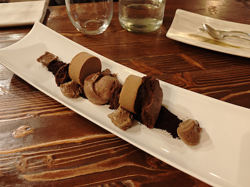 I've had a lot of fine dining and a lot of Michelin places. I didn't expect to be stunned by a chocolate dessert, but here we are. Well, not every component was good, but the chocolate mousse was super impactful, the cocoa powder was complex and provided a nice texture. The most impressive of all is the chocolate sorbet, which sounds basic but really isn't. It's got this very sophisticated lightness to it, and made using dark chocolate without much sweetness, but somehow there isn't much bitterness coming through. Supreme, and a must try. The aspects that weren't good were the chocolate cookies which were abit hard and lacked complexity, as well as the semifreddo which was abit too frozen and not very special. However, overall, it's still v good and a must try