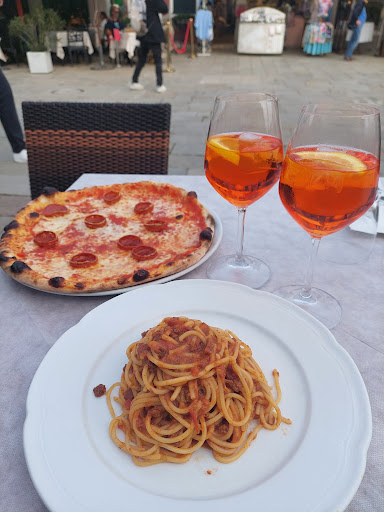 I am celiac, They don't have any gluten-free dishes, so I ordered grilled fish. My surprise when I received two fish fillets and nothing else. When I asked the second waitress she told me that it didn't come with anything and if I wanted a salad... My husband was finishing his pizza which arrives long before my plate so I said no. The Aperol Spritz is the smallest one I've had since I arrived in Italy 3 weeks ago and it tastes different.
