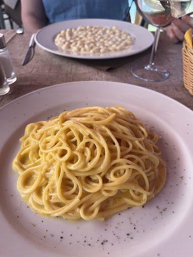 If you're looking for a place with a restroom and air conditioner but don't have much expectations for quality service then I highly recommend this place! You will be charged for service regardless of the performance 🤡. Though English is printed on the menu card DO NOT expect basic english from the staff. Staff will nod their head instead of confirming the order so you'll have to be proactive with your fullfilment and the added thrill is something priceless. Good thing they serve bread and crackers as an entry because 25euro will not get you filled, which I suppose should be expected with such small competition. To end on a positive note I highly recommend pasta as it seems reasonably priced...