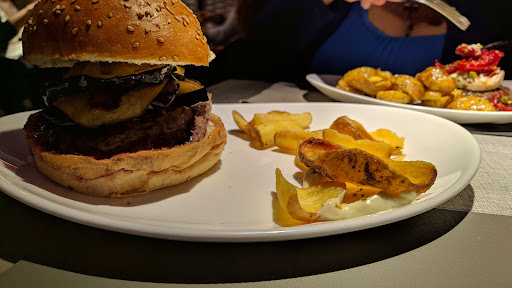 Read moreLocale nuovo con arredamento bizzarro sì, ma privo di significato e colore, stracolmo di oggetti inutili plastificati messi lì solo a prendere polvere. Il top della fantasia sono stati gli innumerevoli quadri neri appesi ad un muro già di per sè molto scuro. Non viene richiesta la cottura della carne all'ordinazione, i panini arrivano già contornati da patatine fritte, già chiusi e con un'apparenza alquanto gustosa. Peccato che la carne non sia buona tanto quanto siano belli i piatti (ho provato con la mia ragazza quello con il pulled pork e un classico cheeseburger). Diciamo che per un ragazzo a cui piace il MC Donald un posto così va anche bene se non ci tiene a sentire il sapore della carne, anche se ammetto che pagare un piatto composto da panino e patatine circa 12 euro e trovarsi la carne insapore (nel caso del cheeseburger) e salatissima (pulledpork) fa un po' girare i cosiddetti. Uniche note positive il menù, carino con foto e descrizioni, il parcheggio che se pur piccolo ben strutturato e le birre dato che ce ne sono...