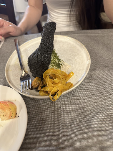 I ordered the cod mousse as an entree and it was something I was initially apprehensive about tasting since I’ve never tried a fish mousse before. Well I’m happy I took the waiters recommendation because wow! The texture reminded me of a blue crab sushi I once tried in Japan but the flavor was creamy, soft, cod flavorful with naturally sweet undertones. The dish came with a crispy black almost chip and the two textured paired together was amazing.