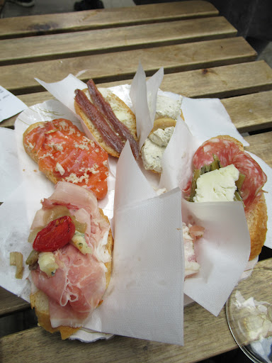 The food as usual was excellent. You never know what masterpieces will be created or available that day. Here's some of the cicchetti we've had on that Saturday:
