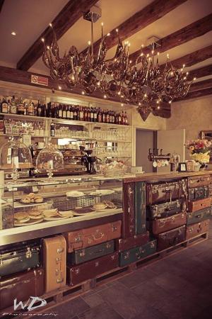 A sweet place for mid-morning hot drinks and chocolate croissant. The owner is kind and has fresh pasteries when others aren't quite open on the Fondamente in Giudecca. Cute decor with suitcases and bottle cap stools.