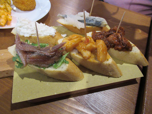 Especially if you're into fish and seafood cicchetti, then this is the place for you. We ordered cicchetti with shrimp, some with octopus, some with squid, quail eggs, anchovies, and fried fish. Aperol Spritz with that.