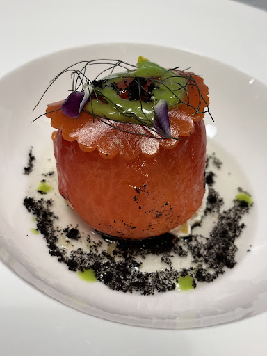 Read moreWe came late one evening for dinner. The cute cat logo had drawn us in. The inside of the restaurant was busy with patrons still finishing their meals at their tables, but the entire patio was empty. We sat down out there and requested menus. The place appeared cool and casual, but when we noticed how pricey the dinner menu was we made the decision to just have a glass of wine and make our way to another establishment. We had nothing against the prices, we just weren't planning on having a 100 euro dinner that night and nothing on the menu really spoke to us.