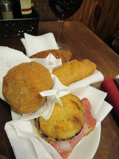 We had some fried Bacalau, some meat croquetas, a ham-sandwich (with Eggplant instead of buns!!), pulpo (octopus) in sauce and spleen. And everything was just so delicious. The eggplant-sandwich was a fantastic idea, something we'll try at home. Octopus fresh and tender and the bacalau crispy and juicy. A surprise was the spleen, first time I've tried that. And it is surprisingly mild and tasty.