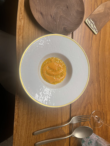 Beautiful and spacious restaurant, it feels modern and peaceful, perfect setting for a dinner experience The service was good, the staff was friendly and knowledeable I love that they have a partnership with a Champagne house! Great Wine menu The food is innovative, fresh and local