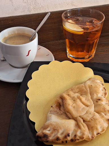 Waited outside at a table very looong for the waiter, finally my girlfriend went in and ordered. Breaded Mozzarella is very dry, cold and not tasty, it’s filled with white bread (main part of that thing), ham and a thin slice of Mozzarella… the waiter told us that this was common breaded Mozzarella … we didn‘t expect ham and white bread if on the menu only „Mozzarella“ is written. Espresso 2€ was ok and the expensive beer was ok too. Nice place to sit and look around. Waiter hasn‘t came by the whole time we sat there. When we wanted to pay my girlfriend went in and asked if someone can make the invoice. Summarized we just enjoyed the nice...