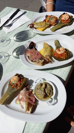 I can't say if the tapas was good (food in the display case). We ordered off the menu. But what we got was excellent! Very reasonable for the quality of the food. They don't speak any English, but there are pictures and English descriptions on the menu. We got the linguini, one with swordfish and artichokes (no sauce), one with crayfish and red sauce (slightly spicy). Both were very flavorful. 2 entrees and 4 glasses of...