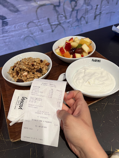We are very obviously not Italian but my boyfriend does understand a bit and noticed that as our barista was putting in the order, the manager asked her to put in each ingredient as a separate order. This brought our order from €6 to €9 which would not have been a huge deal at all and if she had asked I probably would have agreed. But since they didn’t say anything and just straight up charged us, it felt like they were either taking advantage of us or just punishing us for ordering yogurt with the topping separate.