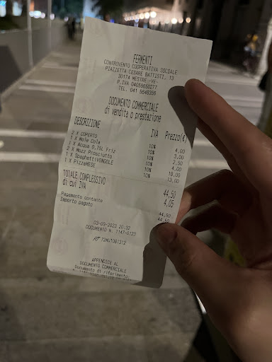 This is the first time I have used Google Maps to review a restaurant and the dining experience was terrible. I would not recommend this restaurant to anyone. Their level of service was abysmal and I was kept waiting for most of the meal. Especially when I asked if I could check out and no one handed me the bill after receiving an affirmative answer. I waited at my seat for half an hour due to the language barrier, and then I voluntarily entered the counter to ask for the bill, only to realise that I should have gone in and paid it myself. But why didn't anyone inform the customer? I felt like I was being ignored as a customer. I don't know if it's because I'm an Asian. I felt offended. We both ordered pasta, pizza, coke and sparkling water. The serving was all slow, the tiramisu was not served until the end and they forgot about it. The shop was crowded, mostly with locals. We chose the outermost seats as tourists and no one took care of our dining experience the whole time. This was my first meal in Venice and ruined my good impression...