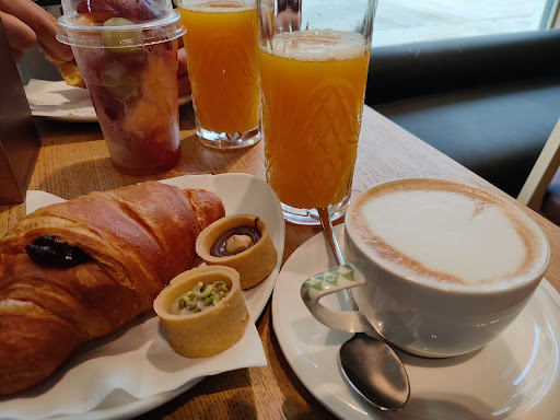 We came for breakfast. The barista was very talented and calmly but quickly prepared our order. We had a very nice croissant with the perfect pistachio filling. The cappuccino was also very good. The orange juice was freshly pressed and the fruit salad consisted of a good mixture of grapes, melons and nectarines. Many locals came to the bar for a quick espresso, which resulted in a lot of chatter and background noise. But also shows that locals visit the gelateria. I would recommend it to everyone...