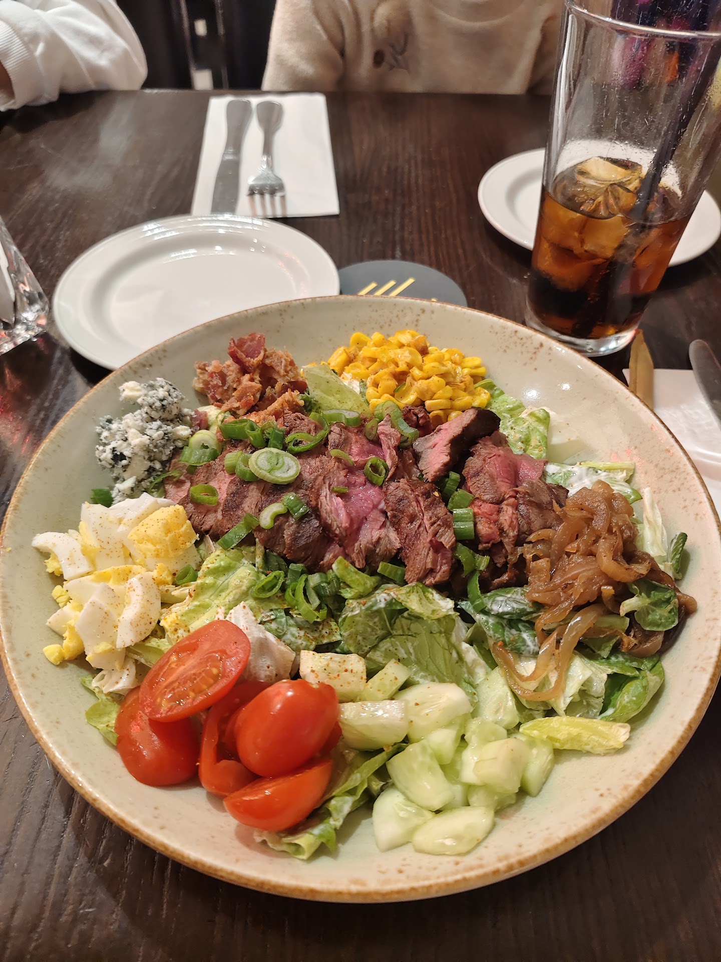 Read moreAs American as it can be, from the decor to the service to the food. It has a great location, with large windows looking out into the streets and large TVs for watching sports. Downstairs has a shop (with tax return) selling HRC merchandise while upstairs has spacious seating. Restroom is downstairs, which is clean and spacious but nothing luxurious. Staff is super friendly and very helpful, drinks are refilled without asking, and plates are cleared off in a timely manner. Everything was great, except the price. At $12 for a lemonade and almost $5 for a side of guacamole, the prices are quite steep, even for Venice standard. I almost want to take off a star just for the unreasonably high prices. It also makes it much less likely for us to return unless we're really dying for the food here. We had a Cobb salad, a classic burger with fries, and nachos with guacamole, plus a cocktail and 2 sodas. All said, everything tastes great and we had a really good time. Also, they do a 15% military discount, which helps.