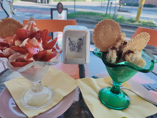 Locale dall'atmosfera un po' fredda, alcuni tavolini esterni. Gelato discreto, nulla di particolare, varia scelta di gusti. Nessun listino al tavolo, solo pannello oltre il bancone con i prezzi e proposte di alcune coppe gelato, quindi costretti ad entrare nel locale per decidere cosa ordinare. Aggiorno la mia recensione dopo la risposta del titolare. Mi sembra che la sua risposta sia critica piuttosto che costruttiva. Io ho semplicemente indicato la realtà del suo locale, non avendo alcun listino al tavolo non mi è permesso di capire cosa ordinare e quanto pagare se non entrando personalmente all'interno. In merito al suo gelato è un mio giudizio personale, sicuramente avrà clienti che lo apprezzano di più, altri di meno. Sinceramente tre stelle non la ritengo una recensione negativa, ma...