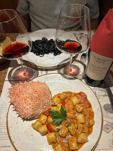 I ordered the cuttlefish ink pasta, and it was extraordinary. The sauce clung to the noodles like velvet, rich and briny with the taste of the sea, faintly metallic in the best way. It even stained my tongue and fingers as I used bread to wipe up the last drops. My wife chose the homemade gnocchi in spider crab sauce, pillowy-soft dumplings bathed in a silky, flavorful sauce that she called some of the best gnocchi sheâs ever had.