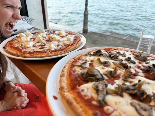 Me and my friend went interailling this summer and we stopped in Venice. One night, we decided to go for pizza … little did we know this would change our lives forever. Not only was the chef chiselled by Julius Caesar himself, but the pizza was nectar of the Gods. We took our pizza (I had four seasons 10/10 would recommend to a friend) and went and sat on the steps of Monastero delle Suore Clarisse to consume it. Genuinely, never have I ever, been more at peace in my life, to the point that if I were to die I would be content, with a mere slice of four seasons la foca in my mitts :) Anyway, to cut the story short, me and my friend enjoyed the experience so much that we now have 18 CARAT GOLD ENGRAVED BRACELETS with the EXACT COORDINATES of this fine establishment. I think its safe to say if I were to get dementia, I would simply show this bracelet and sing "ohhhhhhhhh take me home to the placeeee I belong" :) Please go to this restaurant as it was the highlight of our trip (put it this way we went travelling round Europe for a month). Also La Foca please set up a delivery service to Manchester, UK as you would have two very loyal customers. We know the idea of us having such bracelets seems ridiculous so we have taken the liberty to attach a photo....