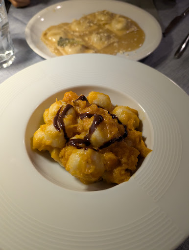 The next time(07-08-2023) the service was very cold and bad. I was serviced by an older woman and a younger girl. The older woman was very cold and the younger girl was ignoring me. The service was very slow that day. I came early(6 pm) and had a reservation and wanted to get a table inside, but I couldn't get a table inside. The first 30 minutes the older woman serviced me. But after a while she didn't come outside, so it was only the younger woman who serviced outside. After I was done with my ravoli I wanted to order a dessert. I tried to make eye contact with the younger woman many times(she saw me) but she didn't come to my table. I waited 30 minutes before she took my plate. Not something I have experienced before. That day I had gnocchi and ravoli. Both dishes under average.