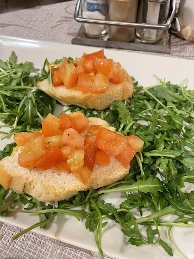 Meanwhile the pacing man delivered plates to the table diagonal from us and the woman was pushing the food around on her plate while the man put parmesan on his. Next thing the pacing man sharply turned to us and started abruptly and firmly asking what I had ordered and what my food was. We responded, startled. Apparently he had mixed up the orders. The hostess informed him and he promptly took their food away and gave it to people outside. (In America you do not remove food from one table and give it to other guests- especially when it has been touched by the patron!)