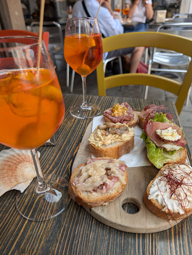 I don’t know if it’s just how things are in Italy but mornings here makes everyone very stern and straightforward. The servers behind the bar only smiled with locals who knew them by name. Our cappuccinos and sandwich were plonked in front of us without words and I kept trying to also ask for another item and to pay but was ignored. We sat outside and watched the pedestrian traffic pass by which was lovely. When we finished I went inside again to try and pay and I was ignored in favor of the local clientele who were greeted effusively (which was actually nice to see... I enjoy when I am remembered by business owners/servers etc, but I would hate that other people were being completely ignored in my favor). It would have been very easy to leave without paying, I mean they never even looked at me so how would they ever remember me if I just walked away? I’m not that kind of person however and I had to eventually insist on paying since they had been ignoring the bills I had placed on the bar and my attempts to get their attention by saying “scuzi” and “per favor” to the bar tender. All said and done, service was fast but not great otherwise, cappuccinos were lukewarm and sandwiches...