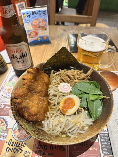 Read moreThe ramen was like eating a combination of cardboard and rubber. It was bland, it did not take on the taste of the broth, and texturally abhorrent. My partner and I got both the Spicy Chicken Katsu ramen and the normal chicken ramen, and I would say avoid them. The gyoza was servicable. Atmosphere wise, the music was obnoxious - it was a lot of bad jpop love ballads, with the odd nice Studio Ghibli piece.