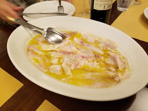 Read moreThis restaurant was one of the greatest surprises of our trip to Venice. Service was great and the food was fantastic. Main highlight was the Branzino carpaccio that is prepared at the table from scratch - they will literally slice the fish in front of you! It was amazing to watch and even better to taste it. It's a small restaurant in a small Venetian alley. The environment is great and filled with posters and flags from the traditional annual Venice Regatta. Chef's recommendations were also very good but the carpaccio...