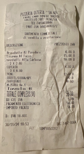 Price - we ordered 5 dishes and the price of the food in comparison with the quality and portion sizes was excellent for Venice which is typically more expensive compared to other cities in Italy.