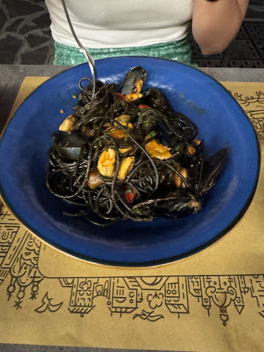 I had dinner with a friend since we were lucky enough to find a table for 2 inside without having a reservation. The restaurant is in a quiet area of Venice, far from the attacking pigeons of St Marco, which is really nice. For starters we had some typical Italian dish (bread, pomodoro and burata) which was good and some marinated eggplant with sardines, invaded by marinated onions, which we found very basic (for 13-14 euros the starter). For the main course I was hesitating between spaghetti alla bursara and spaghetti with raw shrimps, but at the waiter’s suggestion I went for the second option. The dish was so fresh that the shrimps were alive and ran out from the plate, otherwise I couldn’t understand why I had maximum 10g of shrimps on a mountain of pasta. No salt at all and a lot of oil, but apparently olive oil is good at making tourists feel better in any situation, so I wouldn’t complain about that. I won’t evaluate the plate of my friend, who had spaghetti alla bursara, but judging by the look on his face, he’s immune to olive oil. The strawberry tiramisu I had for dessert was not bad at all and made me forget a little about my 21 euros spaghetti with abstract shrimps. Honestly I’ve ate way better in Venice for the same money, but if you want to spend a quiet and decent moment, I guess you could...