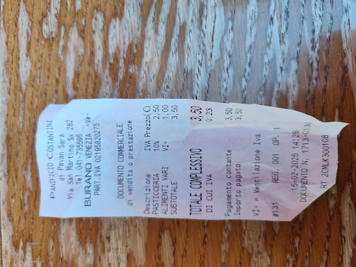 Read morePanificio Pasticceria Costantini es una joya oculta en la encantadora isla de Burano que no puedes perderte durante tu visita. Sus pasteles típicos, elaborados con mantequilla, son una delicia para el paladar y una verdadera representación de la cocina tradicional de la región. Sin embargo, lo que realmente destaca en este lugar son sus versiones de pasteles con pepitas de chocolate, una tentación irresistible para los amantes del dulce. Cada bocado es una explosión de sabor y textura que te dejará deseando más. No importa si estás de paso por la isla o planeas quedarte un tiempo, una parada en Panificio Pasticceria Costantini es imprescindible para disfrutar de auténticos placeres...
