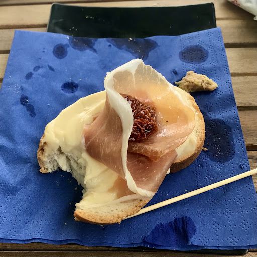 The quality of the “cicheti” is far below the local standard and generally far from being acceptable. For €3, I was served a slice of low-quality bread, with some low-quality melted cheese on top (which was sold as “pecorino”), a slice of low-quality cured ham, and a low-quality dried tomato. Guess what? It resulted in low-quality “cicheto”. Similarly, also the spritz was particularly poor. I left both things nearly untouched on the table and the waiters didn’t even care to ask whether the food and/or beverage presented any problem.