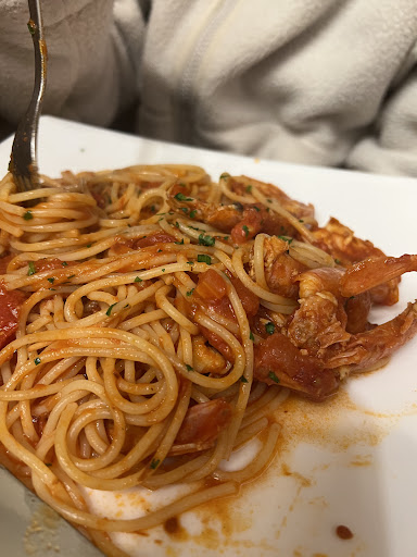 The menu is not extensive, with only about 10-12 main dishes. I ordered pasta with shellfish, and my friend chose pasta carbonara. I’ve had pasta in different countries and restaurants, and I can say that this pasta was definitely competitive. Don’t expect fancy plating like in an expensive restaurant, but for me, that wasn’t important. The most important thing was that I enjoyed my generous portion to the last bite!
