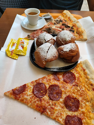 Read moreWe stopped at this place to have our last lunch in Venice before taking the train. They have tons of different options for food. We got pizza by the slice, frittelle filled with nutella and pistachio cream, a spritz, a coffee, and a bottle of water. All together, everything only cost about 20 Euros. The staff was so kind and friendly and I really enjoyed the service I received from them. If you want a cheap meal for anything you want near the train station, this is the place to go. They have outdoor seating as well as an inside courtyard. Please ignore the hot sauce packets in the picture--my husband brings those everywhere. 🤣 Note for people who like spicy: they do have chili oil and red pepper flakes if you...