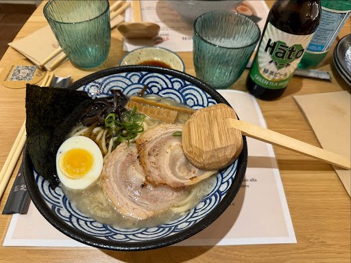 Read moreRamen eccezionale! Ravioli di carne buonissimi! Si sente la qualità e la freschezza dei prodotti che usano per preparare i piatti. Tutto viene preparato al momento e se alcuni piatti o ingredienti aggiuntivi non sono più disponibili vieni avvisato dal personale. Degna di nota anche la birra aromatizzata al the verde che mi ha colpito per il gusto particolare. Il locale essendo di piccole dimensioni non dispone di molti posti a sedere (una quindicina circa) pertanto è fortemente consigliato prenotare per evitare di non poter...