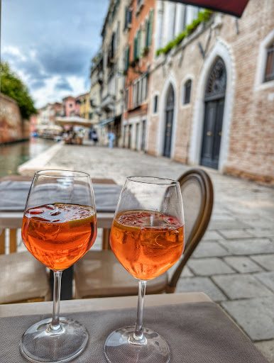 So we had actually planned to go next-door however when we got to the restaurant it was empty and the tables outside had no cover (the weather was sun one second then rain the next so we were not risking it). Therefore we decided to go to the next restaurant (Diana's) and I am glad we did as it was a great experience. we started with a couple of Aperol's and then a couple of beers as we had walked a lot and needed to cool off. They had no problem at all with us waiting to eat. When we did go for food we ordered ham and melon as a starter to share (fresh and tasty, perfect for a hot day), then we had carbobnara and a milanese. The food was just lovely, not massive portions which was nice but enough for a nice lunch. We both had wine, I ordered a glass of read and when it came it tasted slightly off, I am not someone to make a fuss so I left it however the waiter noticed, asked me if there was a problem and when I said it did not taste right he replaced it with a different wine, even bringing out a small taste to make sure I liked it first. A really nice tough I really appreciated. It was a great people watching spot, both on the road and on the waterway (some close calls with boats coming round the corners fast, but they are just so good in boats in this city there was never an issue). A lovely spot...