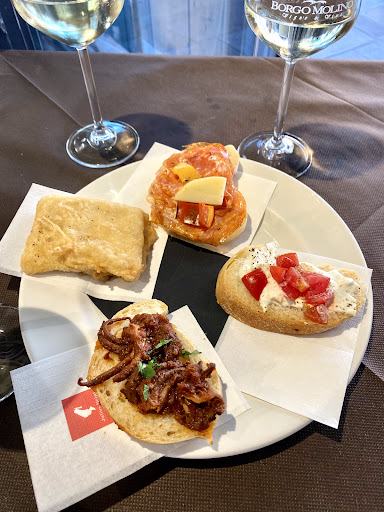 Our waiter was very arrogant and acted as though he knew everything about everything. Ordered a spritz Aperol that tasted like they forgot the prosecco so I barely drank any of it. I ordered the pasta with scallops and was brought the tiniest portion of pasta I've seen in Italy with mussels in it and not scallops (at 13euro). When I asked our waiter about it he asked me if I had even read the menu and that they were "queen's scallops" and dove in to a lengthy explanation of them being local scallops. I love sea food and am not an idiot; these were some sort of mussels and not scallops. Regardless, I tried to eat the meal. It tasted as though the chef did not properly clean the "scallops" and every bite I took tasted like it had sand in it. I took it inside and told the woman at the bar it wasn't good. She, being the only genuinely nice person here, did offer to make me something else, but I was ready to leave and declined. I took note of the Italian word they use for the "queen's scallops" (canestrelli) and later Googled it. Those actually look like scallops, but I had mussels in my dish. So in the end it was an awful experience with overpriced food and a waiter that...